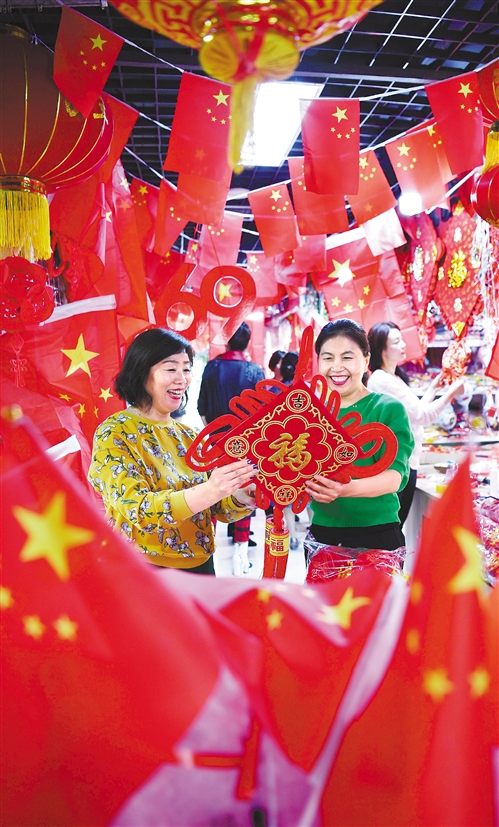 圖⑤ 9月30日,河北省保定市蓮池區(qū)西高莊亨佰麗小商品批發(fā)城,顧客在選購國慶飾品,歡度佳節(jié)。趙昱萱 攝