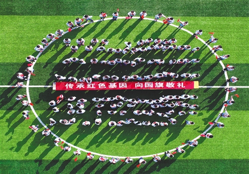 圖⑦ 9月29日,山東省滕州市實驗小學開展“傳承紅色基因,向國旗敬禮”主題活動,慶祝新中國成立69周年。 宋海存攝