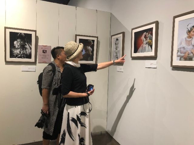 觀眾們?cè)谡箯d內(nèi)觀看婚照作品。(來(lái)源:新華社客戶端)