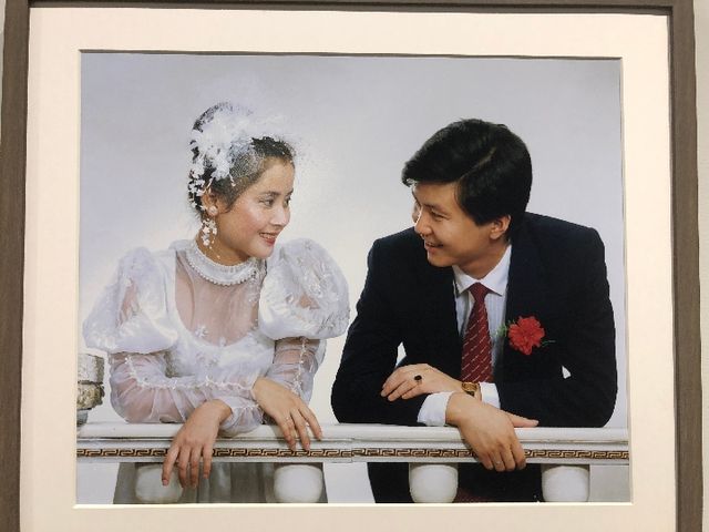 展廳內(nèi)的一幅新舊婚照對(duì)比圖引起了觀眾們的注意,作品中左邊的照片是一對(duì)新人于1980年拍攝的婚照,右邊是這對(duì)夫婦于今年以同樣角度、同款風(fēng)格拍攝的一張婚照。對(duì)比之下,雖然曾經(jīng)的“新人”容顏漸老,但幸福依舊。