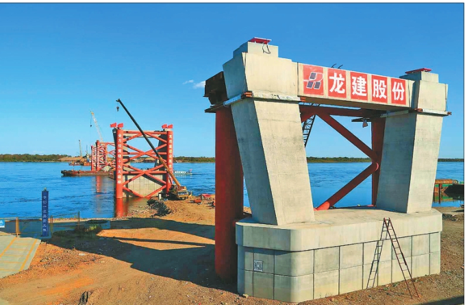 中俄黑龍江大橋施工現(xiàn)場(chǎng)。