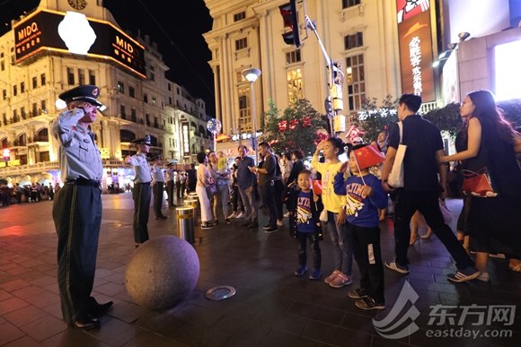 10月4日晚上20時30分,在南京東路與湖北路交叉口,武警上??傟爤?zhí)勤五支隊官兵正在疏導游客,突然手持國旗的3名小朋友走到執(zhí)勤官兵面前,朝著執(zhí)勤的戰(zhàn)士敬了個禮,并向執(zhí)勤的戰(zhàn)士說:“叔叔,您辛苦了?!彪S后,執(zhí)勤的戰(zhàn)士也向3位小朋友回敬了一個軍禮。這溫馨的一幕,被網(wǎng)友用手機拍照記錄,發(fā)到微信朋友圈中,感動了不少人。