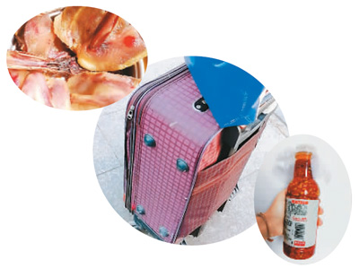 圖為小葉母親給她裝的行李箱和里面的板鴨、剁椒醬。