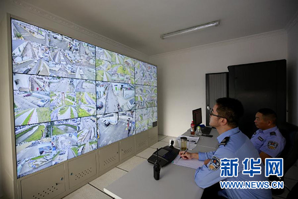 10月9日,工作人員在吳介巷美麗鄉(xiāng)村監(jiān)控室值班。新華社記者 張建松 攝
