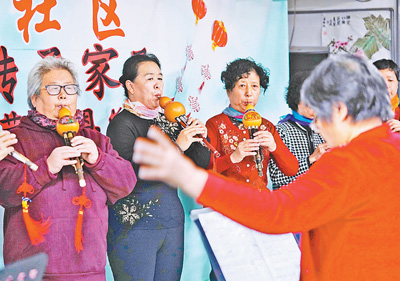 10月16日,北京市海淀區(qū)北下關(guān)街道廣通苑社區(qū)葫蘆絲樂隊(duì)在表演節(jié)目。當(dāng)日,該社區(qū)舉辦“重陽孝道,傳承家風(fēng)”活動(dòng),組織社區(qū)文藝團(tuán)隊(duì)為老人們表演節(jié)目,開展讀家書等活動(dòng),迎接重陽節(jié)。新華社記者 鞠煥宗攝
