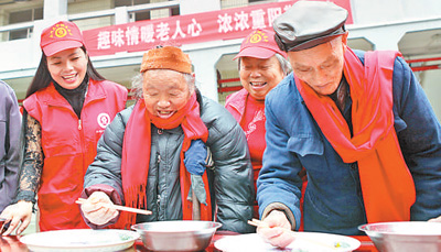 10月15日,重慶市永川區(qū)雙石鎮(zhèn)敬老院里歡歌笑語、熱鬧非凡,雙石鎮(zhèn)機(jī)關(guān)、社區(qū)的志愿者在此開展“趣味情暖老人心 濃濃重陽敬老情”主題活動(dòng),為30余名老人送去重陽節(jié)的祝福。圖為老人在志愿者的助威聲中玩夾彈珠游戲。劉新吾 陳仕川攝影報(bào)道
