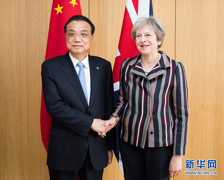 當(dāng)?shù)貢r(shí)間10月19日上午,國務(wù)院總理李克強(qiáng)在布魯塞爾出席亞歐首腦會議期間會見英國首相特雷莎·梅。 新華社記者 黃敬文 攝