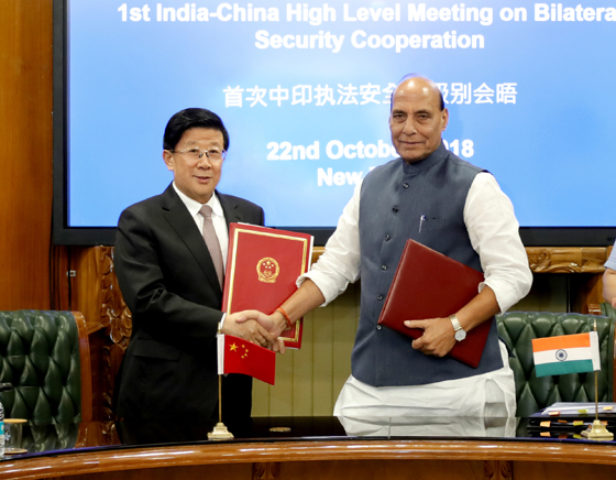 10月22日,中國與印度首次執(zhí)法安全高級別會晤在新德里舉行。國務(wù)委員、公安部部長趙克志與印度內(nèi)政部部長辛格共同簽署了《中華人民共和國公安部與印度共和國內(nèi)政部合作協(xié)議》。