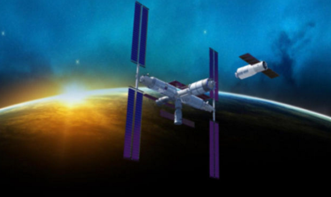 中國空間站構(gòu)想圖。(中國航天科技集團(tuán)五院供圖)