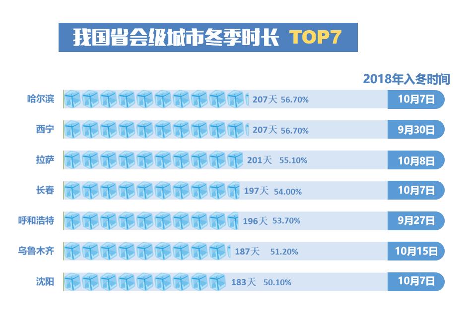 圖為我國省會級城市冬季時(shí)長前7名以及2018年入冬日期。王若嘉 制圖