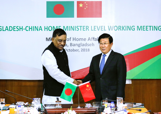 國務(wù)委員、公安部部長趙克志10月26日在達(dá)卡與孟加拉國內(nèi)政部部長阿薩杜扎曼·汗舉行會談。