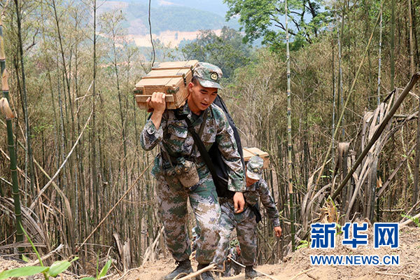 這是杜富國(前)在轉(zhuǎn)運爆炸物途中(資料照片)。新華社發(fā)(黃巧 攝)