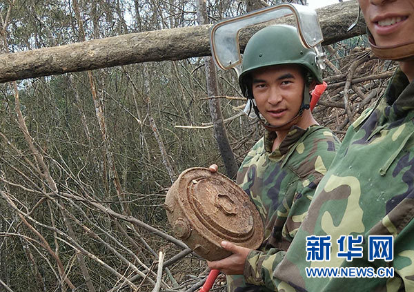 這是杜富國(左)在排雷現(xiàn)場(資料照片)。新華社發(fā)(楊萌 攝)