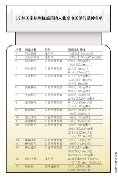 考慮到文件印發(fā)后,各定點(diǎn)醫(yī)療機(jī)構(gòu)還需開展藥品采購(gòu)、配備以及進(jìn)行醫(yī)院的信息系統(tǒng)升級(jí)改造等因素,這17種抗癌藥北京市將從今年11月15日起開始納入醫(yī)保報(bào)銷。