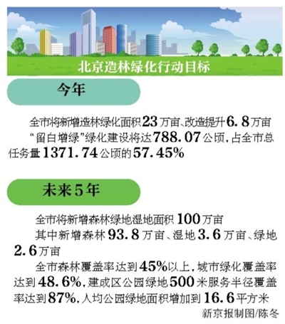 市園林綠化局副局長蔡寶軍告訴記者,新一輪百萬畝造林綠化總體規(guī)劃,將在城市核心區(qū)實現(xiàn)生態(tài)景觀重塑,中心城區(qū)和新城區(qū)多元增綠,形成城市森林與公園綠地為主體的城市綠化體系。未來,北京市將以城市副中心、北京新機場、冬奧會、永定河、大運河、“三山五園”、十八里店、南中軸等重點區(qū)域綠化為節(jié)點,形成大尺度森林濕地群落、高品質(zhì)綠地公園組團、多景觀田園村莊綠化為主體的綠化體系。