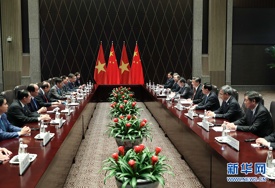 11月4日,國家主席習近平在上海會見越南總理阮春福。 新華社記者 姚大偉 攝