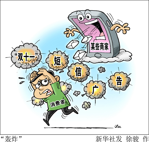 離“雙十一”到來尚有一周,但廣告已先行“轟炸”好幾輪。短信、電話、彈窗……促銷廣告以各種形式密集“攻占”消費(fèi)者的視覺、聽覺和信息獲取的渠道空間,令不少人抱怨“不勝其煩”。