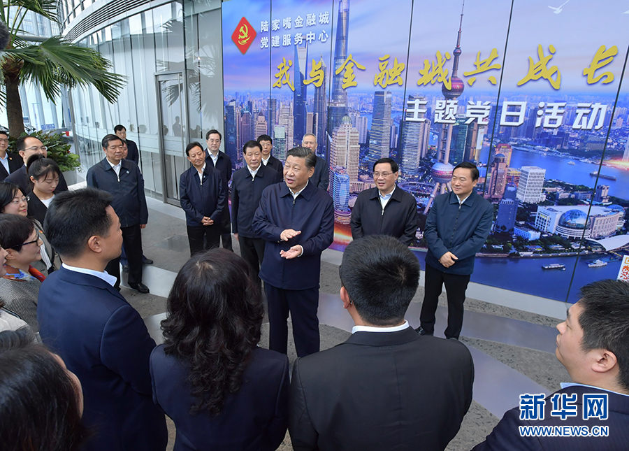 這是習近平在位于上海市浦東新區(qū)陸家嘴的上海中心大廈,視察陸家嘴金融城黨建服務中心,了解城市樓宇黨建工作情況。 新華社記者 李濤 攝