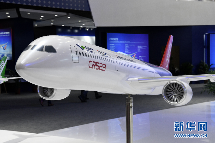 ??? 現(xiàn)場展示的CR929模型(11月7日攝)。 在第十二屆中國國際航空航天博覽會(huì)上,作為我國民用大飛機(jī)的研制主體,中國商用飛機(jī)有限責(zé)任公司展示了CR929遠(yuǎn)程寬體客機(jī)1:1樣機(jī),吸引了眾多觀眾參觀體驗(yàn)。 新華社記者 梁旭 攝