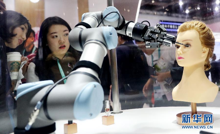 11月7日,參觀者在法國(guó)歐萊雅展臺(tái)觀看機(jī)器人作業(yè)演示。 休戚與共的地球村,共享創(chuàng)新成果已成為國(guó)際社會(huì)的共同意愿和現(xiàn)實(shí)選擇。透過進(jìn)博會(huì)這個(gè)窗口可以看出,從上下游產(chǎn)業(yè)銜接到前沿領(lǐng)域合作,從協(xié)作共享資源到開放共享智慧,全球經(jīng)濟(jì)發(fā)展的新動(dòng)能正在匯聚。 新華社記者 方喆 攝