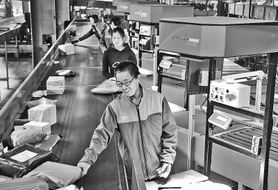 11月11日,工作人員在江蘇省南通市一家快遞公司分揀系統(tǒng)旁忙碌。國家郵政局預(yù)計,今年“雙11”期間,全行業(yè)處理的郵件、快件業(yè)務(wù)量有望超過18.7億件,最高日處理量是平日的3倍。新華社發(fā)(許叢軍攝)