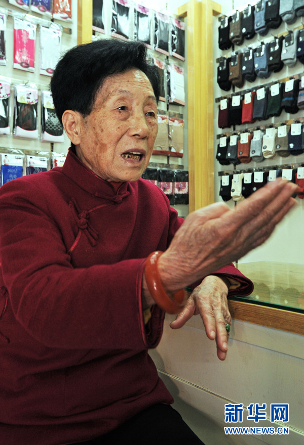 78歲的義烏小商品市場第一代經(jīng)營戶馮愛倩講述創(chuàng)業(yè)經(jīng)歷(10月25日攝)。新華社記者 譚進 攝