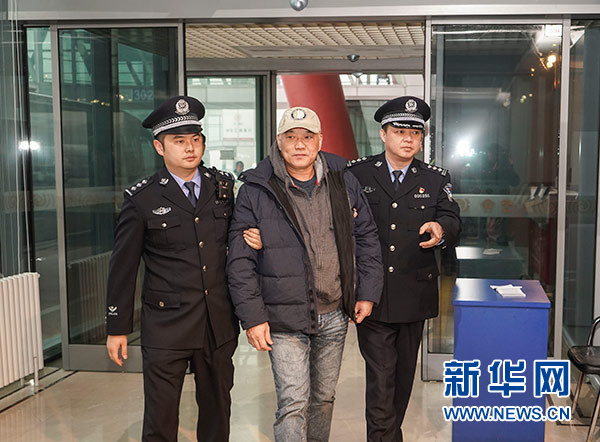 11月14日,在北京首都機(jī)場(chǎng),紅通逃犯鄭泉官被從美國強(qiáng)制遣返。新華社記者 殷剛 攝