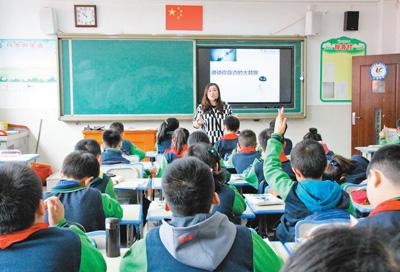 孩子們?cè)谡n堂上熱烈討論,教室最后,8位班主任也在邊聽(tīng)課邊做筆記。