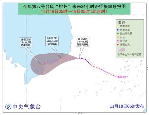 據(jù)中央氣象臺網(wǎng)站消息,18日06時中央氣象臺發(fā)布臺風(fēng)藍(lán)色預(yù)警,今年第27號臺風(fēng)“桃芝”生成,今晨5點“桃芝”中心位于越南胡志明市偏東約365公里的南海西南部海面上,預(yù)計將于今天傍晚前后在上述沿海登陸,以后強度將明顯減弱。