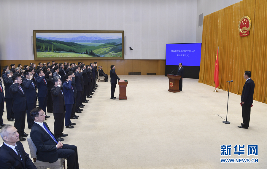 宣誓后,李克強要求大家忠于憲法,依法履職,實干擔當,清廉自守,勤勉盡責做好本職工作,盡心竭力為群眾辦好事、解難事。全面貫徹習近平新時代中國特色社會主義思想和黨的十九大精神,增強“四個意識”,不懈奮斗,保持經(jīng)濟社會平穩(wěn)健康發(fā)展,交出經(jīng)得起人民和歷史檢驗的答卷。