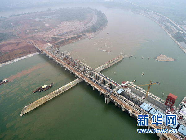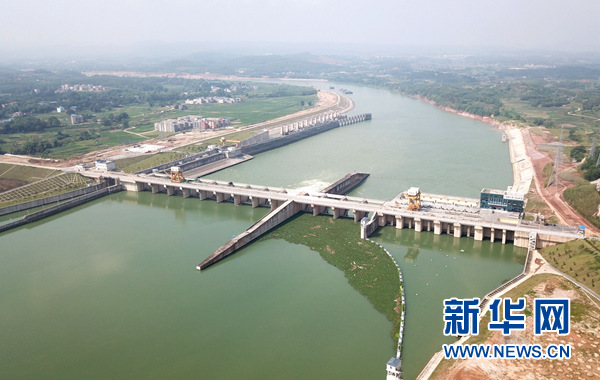 廣西南寧老口水利樞紐工程(5月18日無人機(jī)拍攝)。 新華社記者 周華 攝
