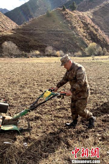 農(nóng)田不翻耕會影響來年莊稼收成,村民頓珠今年冬天因生病臥床,無法下地干活,便民服務(wù)隊(duì)官兵得知情況后,主動(dòng)幫助他翻耕農(nóng)田,10余名官兵現(xiàn)學(xué)現(xiàn)做,用一天時(shí)間將頓珠家的農(nóng)田全部翻耕完成。