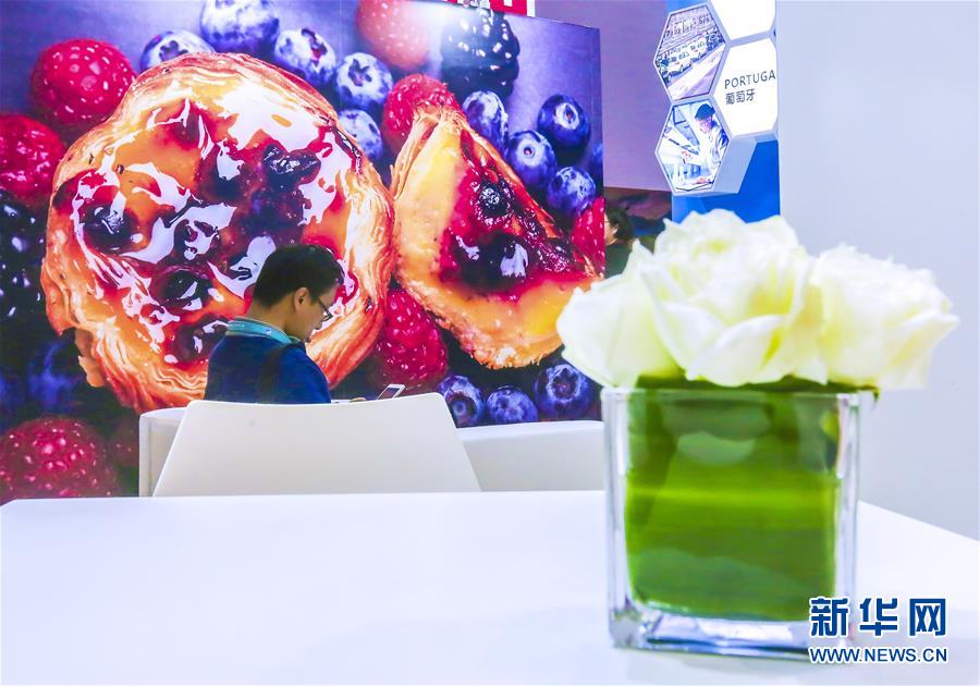 2018年11月6日,在中國上海,一位男士坐在中國國際進口博覽會的葡萄牙展區(qū)內(nèi)。新華社記者 殷剛 攝