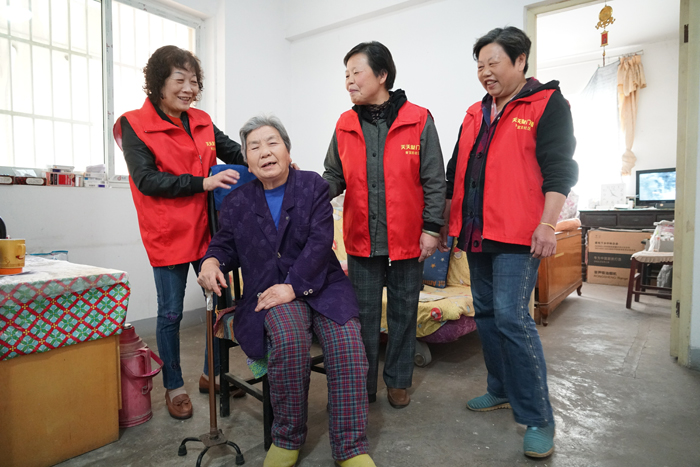 和王美華老人一樣,72歲的蔣桂梅也是一名獨居老人。經(jīng)歷喪夫之痛的她搬進新居后,陌生的環(huán)境、生疏的鄰里,讓她十分不適應,經(jīng)常閉門不出?!疤焯烨瞄T組”多次上門探望后,她也決定加入志愿者隊伍。從“被敲門”到如今青和居第一網(wǎng)格黨支部書記,蔣桂梅說自己“活得更有意義”。