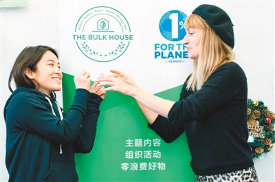現(xiàn)在,這對小情侶在北京南鑼鼓巷開了一家名叫THE BULK HOUSE(零浪費無包裝商店)的小店,繼續(xù)倡導(dǎo)“零浪費”生活,用不銹鋼吸管代替塑料吸管,還把用過的米袋子舊物改造成時尚手包、背包,把舊布料做的衣服和枕套,用閑置紙盒郵寄快遞,受到了顧客歡迎。