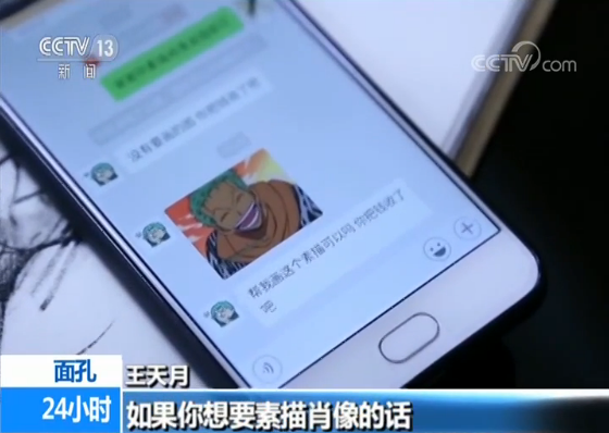 王天月:一般給我打錢,我都會(huì)說(shuō)如果你想要素描肖像的話,把你的照片發(fā)給我就行,這個(gè)發(fā)的是動(dòng)畫片。