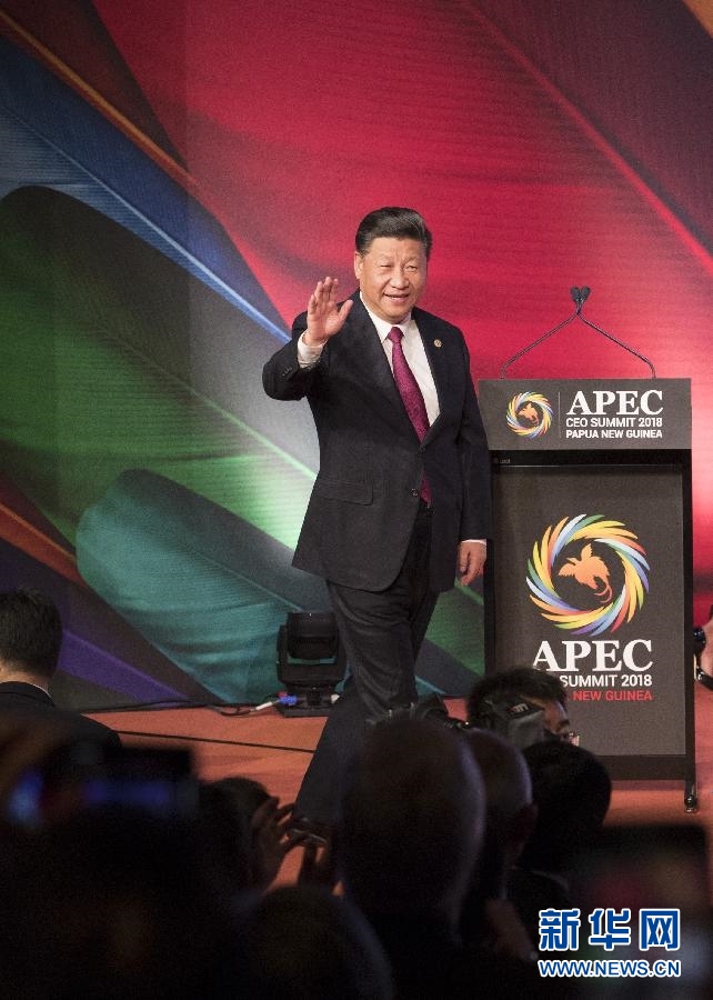 ??? 11月17日,習(xí)近平應(yīng)邀出席在巴布亞新幾內(nèi)亞莫爾茲比港舉行的亞太經(jīng)合組織工商領(lǐng)導(dǎo)人峰會(huì)并發(fā)表題為《同舟共濟(jì)創(chuàng)造美好未來(lái)》的主旨演講。這是習(xí)近平步入會(huì)場(chǎng)。新華社記者 黃敬文 攝