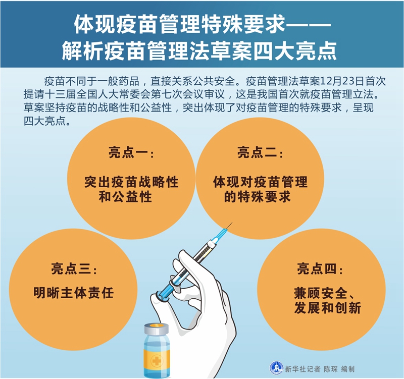 新華社北京12月23日電? 題:體現(xiàn)疫苗管理特殊要求——解析疫苗管理法草案四大亮點(diǎn)