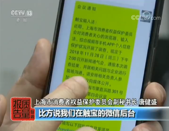 上海市消費(fèi)者權(quán)益保護(hù)委員會(huì)副秘書長(zhǎng) 唐健盛:發(fā)布會(huì)的兩天以前,我們就通過(guò)各種方法和三家企業(yè)能夠進(jìn)一步,希望能夠跟他們聯(lián)系上,比方說(shuō)我們?cè)谟|寶的微信后臺(tái)進(jìn)行了留言,并且我們也上傳了PDF版的合照我們的會(huì)議通知,那么其它的你比方說(shuō)獵豹瀏覽器和芒果TV我們也采用了類似的方法,我們希望多種渠道能夠使他們知道這個(gè)事,并且也非常希望他們能夠來(lái)開(kāi)我們的發(fā)布會(huì),給到消費(fèi)者一個(gè)明明白白的說(shuō)法。那么非常遺憾,我們通過(guò)消費(fèi)者溝通的這種渠道沒(méi)有獲得企業(yè)應(yīng)有的響應(yīng),我們也認(rèn)為其實(shí)在這一塊企業(yè)也是需要進(jìn)一步加強(qiáng)的。
