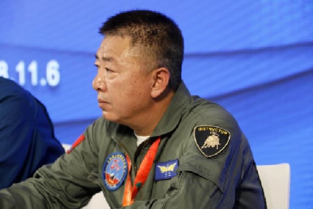 ↑殲-20首飛試飛員李剛在記者見面會(huì)上