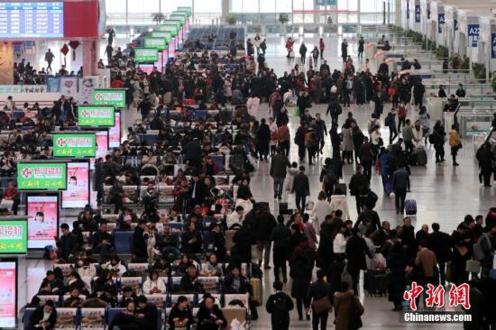 資料圖:高鐵已開售春運(yùn)車票,車站內(nèi)人頭攢動。中新社記者 張遠(yuǎn) 攝