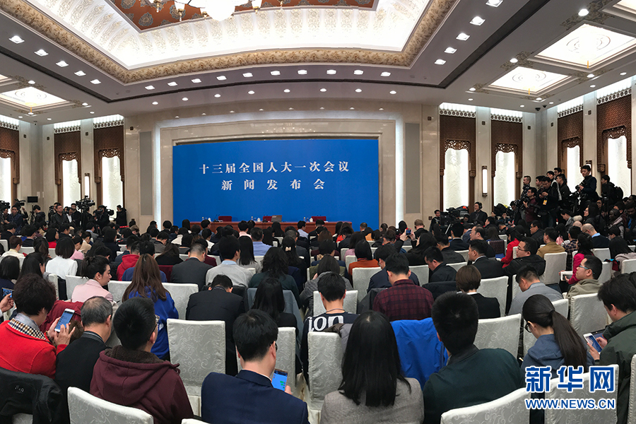 3月4日,十三屆全國人大一次會(huì)議在人民大會(huì)堂新聞發(fā)布廳舉行新聞發(fā)布會(huì),由大會(huì)發(fā)言人張業(yè)遂就大會(huì)議程和人大工作相關(guān)的問題回答中外記者的提問。圖為新聞發(fā)布會(huì)現(xiàn)場(chǎng)。新華網(wǎng)/中國政府網(wǎng) 陳杰 攝