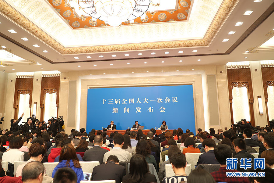 3月4日,十三屆全國(guó)人大一次會(huì)議在人民大會(huì)堂新聞發(fā)布廳舉行新聞發(fā)布會(huì),由大會(huì)發(fā)言人張業(yè)遂就大會(huì)議程和人大工作相關(guān)的問(wèn)題回答中外記者的提問(wèn)。圖為新聞發(fā)布會(huì)現(xiàn)場(chǎng)。新華網(wǎng)/中國(guó)政府網(wǎng) 陳杰 攝