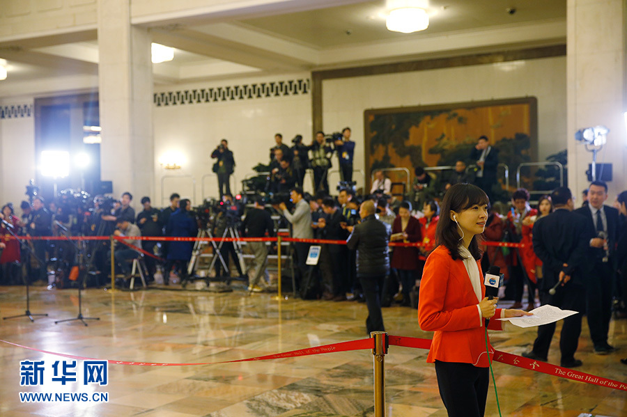 ??? 3月5日,第十三屆全國人民代表大會第一次會議在北京人民大會堂開幕。這是記者在“代表通道”采訪。 新華網/中國政府網 陳杰 攝