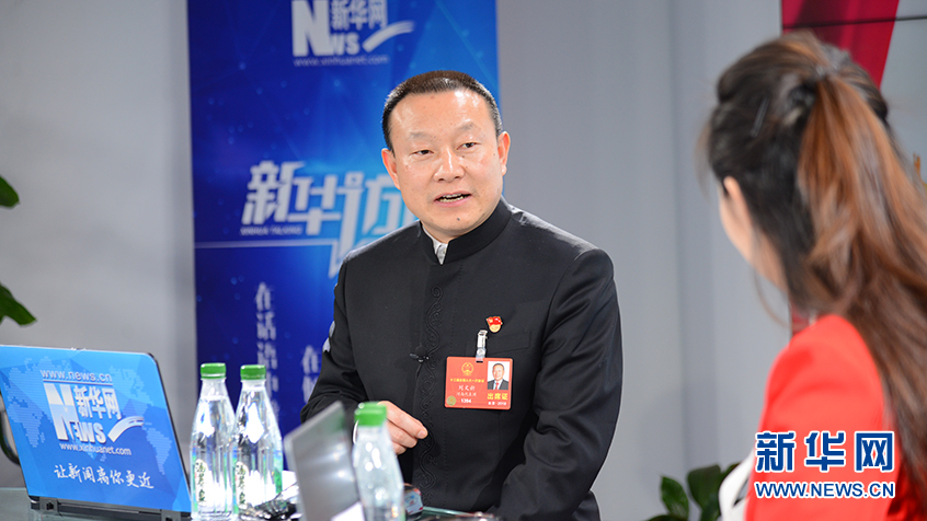 3月7日,全國人大代表、河南省信陽市文新茶葉有限責(zé)任公司董事長劉文新(左)做客新華網(wǎng)2018全國兩會特別訪談。新華網(wǎng) 楊濛攝