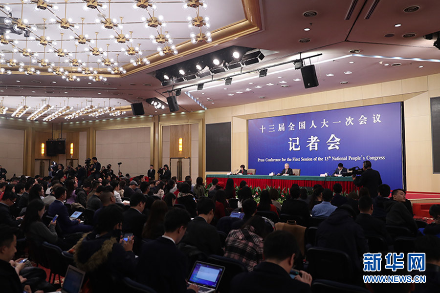 十三屆全國人大一次會議新聞中心于3月7日在梅地亞中心多功能廳舉行記者會,邀請國務(wù)院扶貧辦主任劉永富就“打好精準(zhǔn)脫貧攻堅戰(zhàn)”的相關(guān)問題回答中外記者的提問。圖為記者會現(xiàn)場。新華網(wǎng)/中國政府網(wǎng) 陳杰 攝