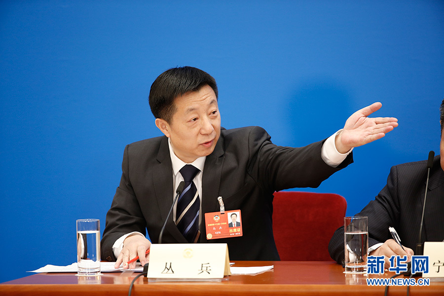 全國政協(xié)十三屆一次會議3月8日15:00在人民大會堂新聞發(fā)布廳舉行第二場記者會,邀請中央財(cái)經(jīng)領(lǐng)導(dǎo)小組辦公室副主任楊偉民,中國進(jìn)出口銀行董事長、黨委書記胡曉煉,農(nóng)業(yè)部原副部長陳曉華,全國工商聯(lián)副主席、清華大學(xué)經(jīng)濟(jì)管理學(xué)院院長錢穎一,中國中化集團(tuán)有限公司黨組書記、董事長寧高寧就推動(dòng)經(jīng)濟(jì)高質(zhì)量發(fā)展回答記者提問。圖為記者會主持人叢兵 。新華網(wǎng)/中國政府網(wǎng) 翟子赫攝