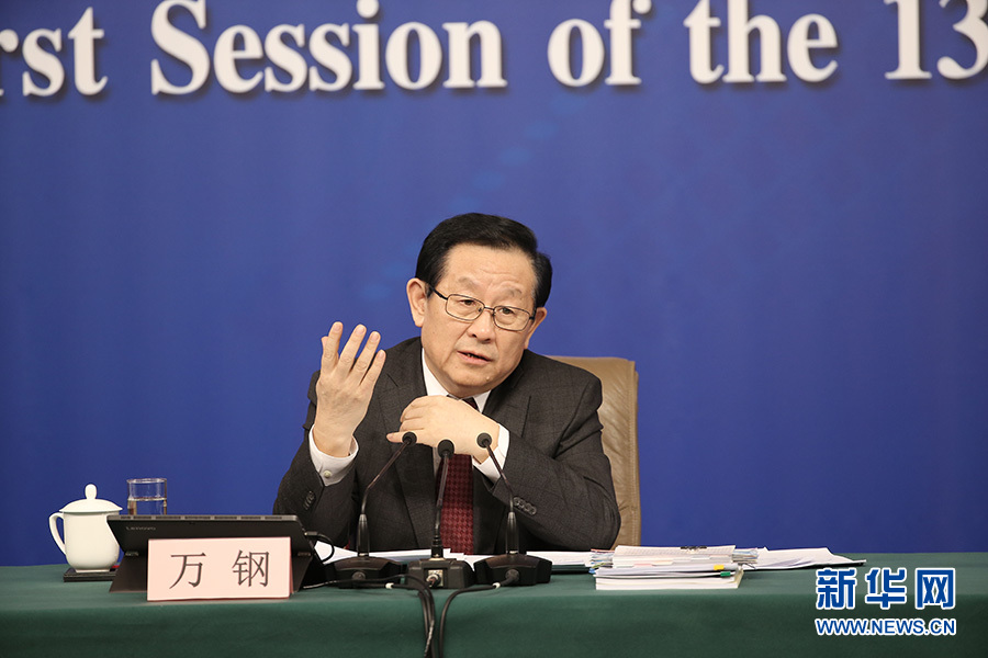 十三屆全國(guó)人大一次會(huì)議新聞中心3月10日上午10時(shí)45分在梅地亞中心多功能廳舉行記者會(huì),邀請(qǐng)科技部部長(zhǎng)萬(wàn)鋼、政策法規(guī)與監(jiān)督司司長(zhǎng)賀德方、創(chuàng)新發(fā)展司司長(zhǎng)許倞就“加快建設(shè)創(chuàng)新型國(guó)家”相關(guān)問(wèn)題回答中外記者提問(wèn)。圖為萬(wàn)鋼回答記者提問(wèn)。 新華網(wǎng)/中國(guó)政府網(wǎng) 陳杰 攝