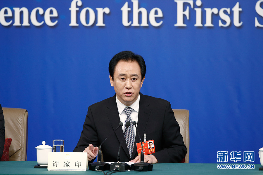 3月10日8時(shí)45分,全國政協(xié)十三屆一次會(huì)議在梅地亞中心多功能廳舉行記者會(huì),邀請(qǐng)5位全國政協(xié)委員就“提高保障和改善民生水平”回答記者提問。圖為許家印回答記者提問。新華網(wǎng)/中國政府網(wǎng) 翟子赫 攝
