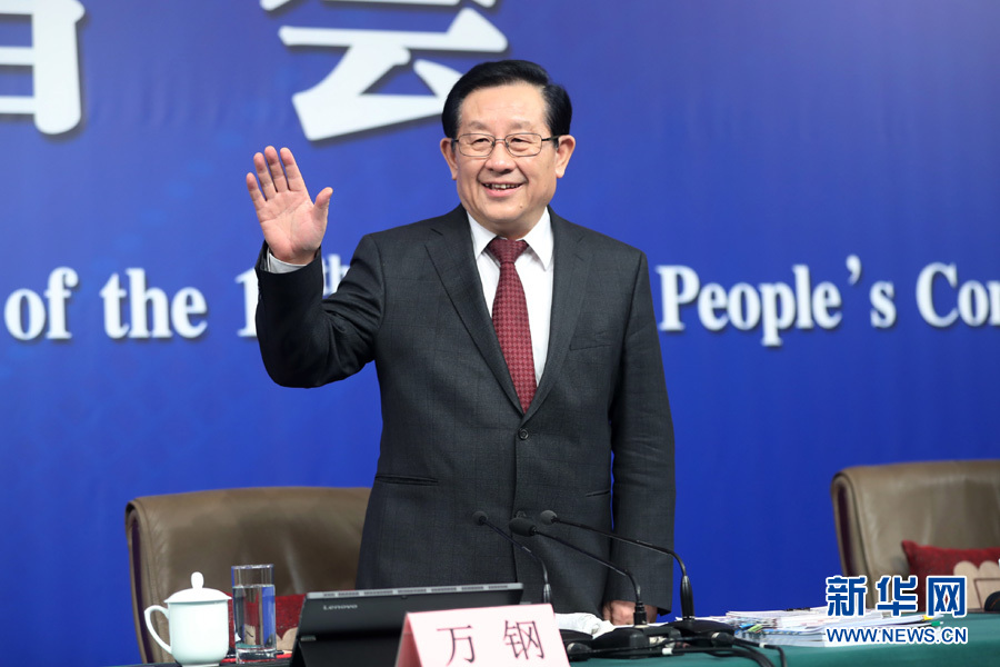十三屆全國(guó)人大一次會(huì)議新聞中心于10日上午10時(shí)45分在梅地亞中心多功能廳舉行記者會(huì),邀請(qǐng)科技部部長(zhǎng)萬(wàn)鋼、政策法規(guī)與監(jiān)督司司長(zhǎng)賀德方、創(chuàng)新發(fā)展司司長(zhǎng)許倞就“加快建設(shè)創(chuàng)新型國(guó)家”相關(guān)問題回答中外記者提問。圖為萬(wàn)鋼向記者示意。新華網(wǎng)/中國(guó)政府網(wǎng) 翟子赫 攝